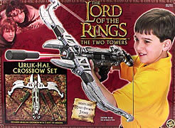 $19.99. For the second film in the Lord of the Rings Trilogy, The Two Towers, comes the role-play item the Uruk-Hai Crossbow set. (Subject to change.) Includes Uruk-Hai crossbow with 3 soft tip arrows. Shoots over 30 feet with 3 power settings!
