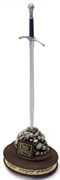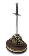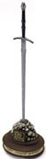 $39.99. The Miniature Collectible Glamdring Sword is a 1/5 scale replica of Gandalf's sword from The Lord of The Rings. Just under 10 inches long, this sword includes a two piece cold cast porcelain base with hand-painted finish. An ancient sword carried by Gandalf the Grey, who is an old, but powerful wizard and friend to Frodo Baggins. He joins Frodo and the other selected members of the "Fellowship" as they cross Middle-earth in an effort to reach Mount Doom and destroy the Ring. Glamdring, a magical sword, glows in the presence of an enemy and it serves Gandalf in his mission to aid the Fellowship of the Ring. It was made by ancient Elves, and is inscribed with runes in the Elven language that say the sword was forged for Turgon, the King of Gondolin.