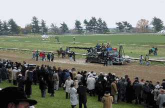 On the set of Seabiscuit. Background actors on location at Keeneland Race Course in Lexington, Kentucky take a break during the filming of the movie's "match race" scene while cameras are repositioned.