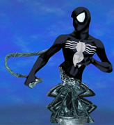 PRICE:$44.99. Symbiote Spider-Man. This highly detailed 6 inch bust intricately depicts Spidey in his post-Secret Wars black costume! The web spinner comes mounted atop a web-draped logo base, and is captured in mid-swing. Sculpted by Sam Greenwell (Avengers Statues)! Limited to 5,000 pieces and features a full-color Certificate of Authenticity! (Subject to change.)