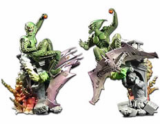 Norman Osborn - billionaire businessman and brilliant scientist. . . until that fateful day when a science experiment went terribly wrong. Transformed into a horrbly mutated monster, Norman lost all seblance of his former humanity inside and out. He is now a raging beast, seeking revenge on the world that turned him into a beast, and focusing all of his efforts on the destruction of Spider-Man. Master sculptor Gabriel Marquez has captured the Goblin in the midst of battle - Spider-Man's webbing wrapped around his arms and waist. This bust measures a monstrous 7 inches high and forms a nice action scene with the companion Spider-Man bust. This bust is limited to a production run of 10,000 pieces and comes fully painted and ready to display out of the box.