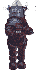 The story's great, the acting is great, the costumes & sets are great!!! Check out the trailer!: http://us.imdb.com/Trailers?0049223 The print we have is in CINEMASCOPE,so for the very first time at Splodge! it's out with the anamorphic lens & the extra-long bed-sheet! Prod Co:Metro-Goldwyn-Mayer. Dir:Fred McLeod Wilcox. Wr:Cyril Hume. SPFX:A.Arnold Gillespie.Robot Builder:Robert Kinoshita. Prod Des:Irving Block,Mentor Huebner. Des(Id Monster):Ken Hultgren. Cast:WALTER PIDGEON,ANNE FRANCIS,LESLIE NIELSON,RICHARD ANDERSON,EARL HOLLIMAN,Frankie Carpenter,Frankie Darro(Robby the Robot).Voices:Marvin Miller(Robby),Les Tremayne(Narrator)94 mins. NFVLS. |