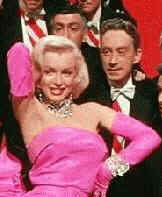 GENTLEMEN PREFER BLONDES Starring in this gaudy Technicolor drama are Jane Russell and a young Marilyn Monroe. Although second billed, Monroe as the gold digging Lorelei Lee is the real star.Her immortal pink-opera-gloved showstopper rendition of"Diamonds Are A Girl's Best Friend"is certainly the best song she ever did, at least in a film. It set a pattern for her roles: the ditzy, greedy blonde bimbo. Gentlemen may prefer blondes, but this blonde bombshell prefers diamonds, and lots of them! Russell is not to be outdone though,with a sexy & very funny number in which she disguises herself as Monroe (complete with black opera gloves) to fool a French courtroom. A