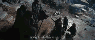 Weathertop is a ground prepared for the wounding of Frodo. The area has many ruined columns and arches which give an air of a temple ground. The composition of the Nazgul further reinforces the ritual element of the scene.