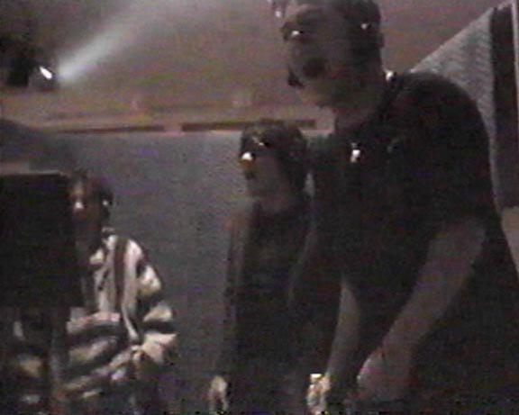 (Left) On the set: Giuseppe with Adam Rifkin during filming. (Right) Posing with Kiss during a photo shoot.