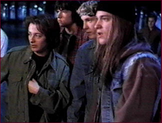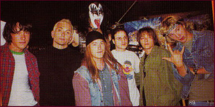 Giuseppe Andrews, Art Alexakis, Gene Simmons, James DeBello, Adam Rifkin, Edward Furlong, and Sam Huntington on the set.