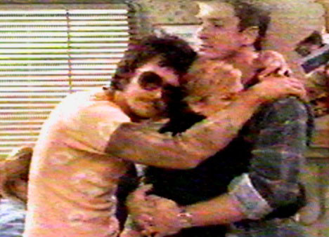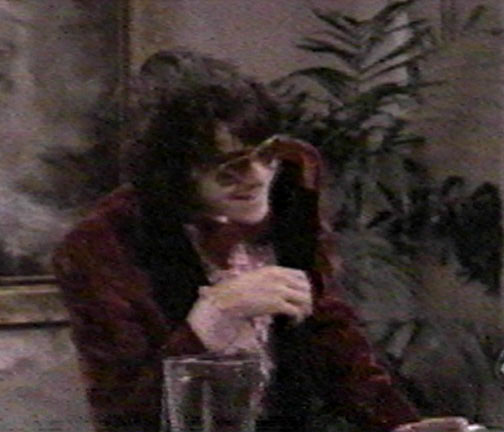 Berg throws a pillow over Germ's shorts to make the conversation more comfortable.