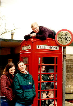 Here are a bunch of Harlaxton students standing around. We were waiting for our guides to the castle to show up... Hmmmmmm there is a phone booth......