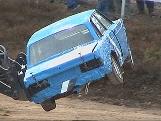 Tom Lundh, Oskarshamns RRC, Saab 99 rullade brutalt i A-finalen.