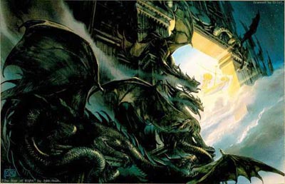 In the distant past nearly 20 million years ago the world was plauged by severe battles between the king Drake's army and the dragon hordes.The final battle was waged in the dragons capitol Mágàdórå.The power of the magics and weapons used by both the dragons and the army were so unimagiable that they tore the very fabric that held thier land together.After the battle nothing remained of the dragons or their civilazation even till today no one knows what happend in those dark times.All that remains is a rumor that a single dragon may still be living in the dark ruins of Mágàdórå.The dragons name is said to be 3drågöñ. He is also said to be the most powerful dragon ever because he knows every magic ever concived by a dragon and plus the fact that he has slained more of the king's army than all the others.legend says that the 3drågöñ will one day return to resume his quest and gain global control...