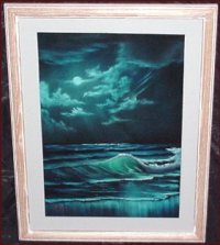 All paintings shown on my complete web site come in standerd size 18" X 24" on stretched canvas. we have a special going on right now for the Midnight seascape original oil at 85.00 shown here.  You may purchase this with border or without border. And please call for quotes on bulk orders. No size is to big. For the smaller bulk orders, you can get 10 of these original oil paintings for special rate of 500.00! That is saving you 100.00 total!