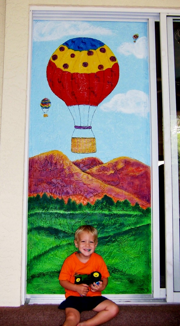 Later, I added a 2nd mural,Hot Air Balloon, in a wall niche in my nephew's playroom.