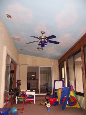 This is a "sky/clouds" mural I painted in my nephews play room.