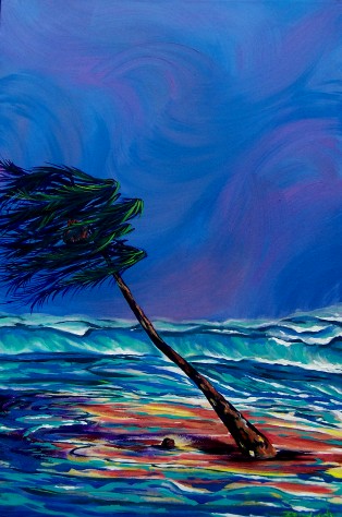 Moody, swirling purple sky, wildly swaying palm, and crashing brilliant colorsof the Key West surf.... $395.00