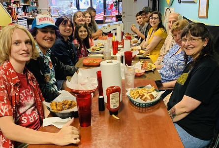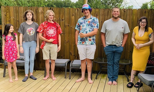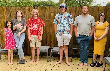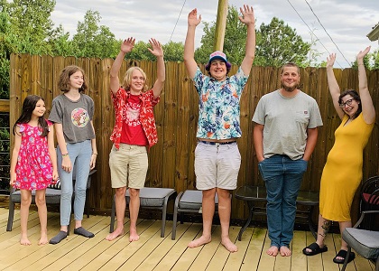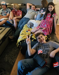 I finally got to meet her kitty Sunnie! Barbara wanted to get a picture of all the cousins together … she wanted the kids to leave an empty space where Wyatt would be, so they can photoshop him into the picture later. After getting them to pose for a “normal” photo, she told them to do something silly, like put their arms in the air and pretend they’re on a roller coaster. Rose was refusing to smile, so Barbara said something about her boyfriend David, and that made her laugh! Sawyer and Boyd are pointing at the empty space, where Wyatt will be added in later. Sawyer said, “This guy, am I right!?”