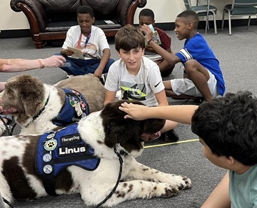 9-19-24 - We enjoyed the first visit of the year from Pawfection today. Several students even read poetry to Linus and Lord Byron. Bonus, Mrs. Mize class was also able to visit Pawfection.