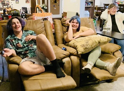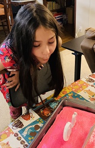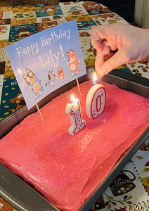 Lily's birthday was October 8th. Her mom's birthday was October 6th. It required a double celebration. First we (Grandma, Ellie, Laurie, Becky and Elizabeth!) had lunch at the new Chick Fil A to try out their new sandwich. Then for dinner at Grandma's house, Laurie brought pizza for everybody and Becky brought strawberry cake that she had made (at Lily's request).