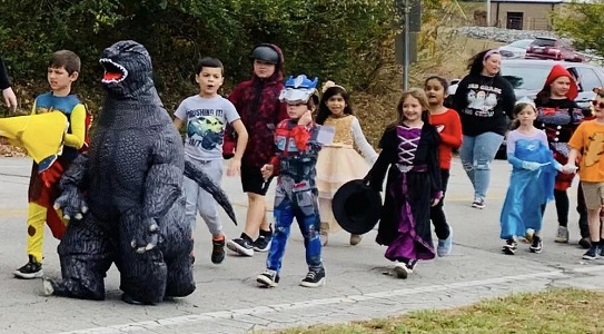 In the afternoon Pleasant Hill School had their annual Halloween parade down Main Street. Here they come!