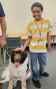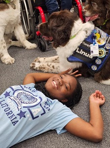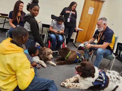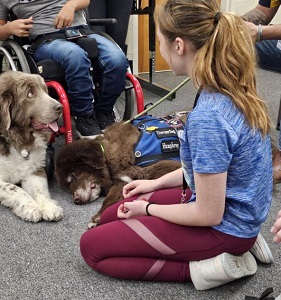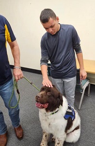 It was an awesome afternoon with the “Newfie Boys”. Our class greatly enjoyed visiting with Linus, Humphrey, and Lord Byron. Yes! All Three of the Pawfection Therapy Dogs came today.
