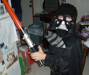 Once upon a time, in a galaxy far, far away - two goofy brothers dressed up as Star Wars characters for Halloween and had a battle in the kitchen.