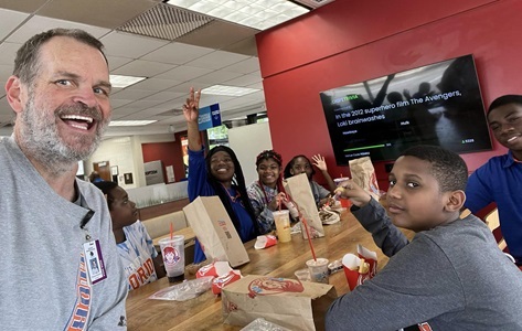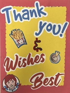 We had a very emotional Lunch Bunch at Wendy’s this morning. Tomorrow is Mr. Casey’s last day and he always treats the kids great. He literally cried from our card. Major props to the fantastic Ms. Tiffany Williams for designing the incredible personalized card.
