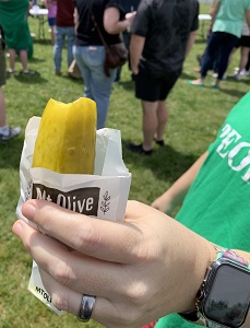 It was a very nice day for the festival. Not hot at all. It was just a lot smaller than I was expecting. Basically what you see in this photo. There were a few food trucks parked off to the side that you can’t see. And a stage, on the other side of all these small tents, where they were holding the pickle eating contests. The annoying thing about that was that the announcer was up on the stage, but the contestants were standing on the ground, behind tables. It was very difficult to see what was going on. I held my phone way over my head to take pics and videos.