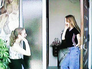 Sarah- "Hi-eee Gabbbby!!" Gabby- "Hi Sarah! Where's Kelli? Sarah- "She's taking this picture!"