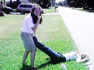 Kelli- "Shhhh..." Sarah- "Hey Kelli! This camera is neat! What does this button do? OOPS!"