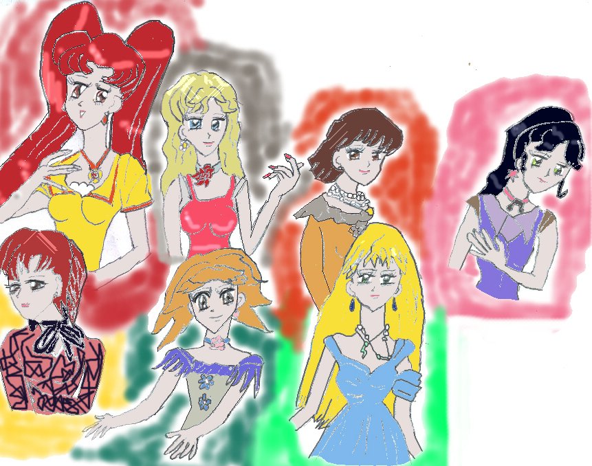 The Galactic Ladies are different than the Sailor senshi. Their outfits are different as well as their names. No Planet names.