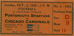 1932 GAME TICKET: The ticket at the left would have gotten a fan into the Cardinals-Spartans game at Universal Stadium in Portsmouth,