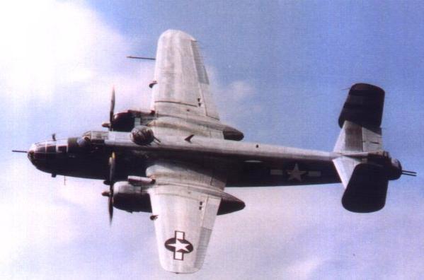 Named after General Billy Mitchell who helped form the United States Army Air Force and prove that airpower would a major force in the next war, the B-25 was a "medium" bomber equipped with a crew of five and seven .50 caliber machine guns. Some aircraft built replaced the glass nose with either six forward firing .50 calliber machine guns or a cannon for anti-ship missions. The B-25 is most famously known for the April 18th, 1942 raid on Tokyo, Japan led by General Jimmy Doolittle. The "Thirty Seconds over Toyko" (the title of a book on the raid) was the first major offensive attack on Japan in the months following Japan's sneak attack on Pearl Harbor, Hawaii on December 7th, 1941.