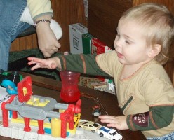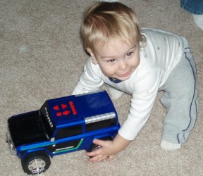 Boyd likes to play with Dwight's "wash car"