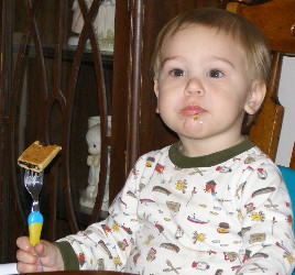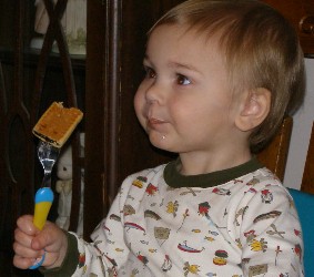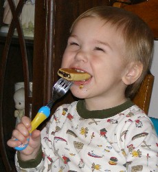 Boyd demonstrates the proper way to eat a fignewton...