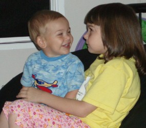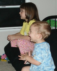 watching a funny video with sister...