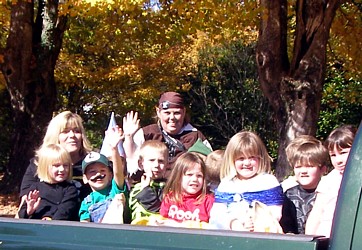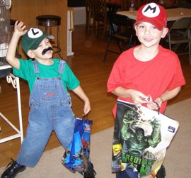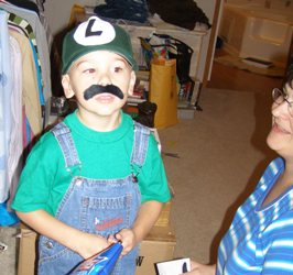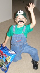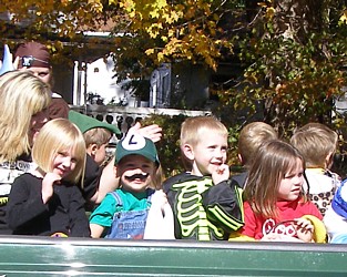 Luigi rides with his pre-school class in the Halloween "Comprade"