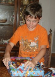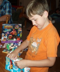 Next he opened up the presents from I.D. and me.