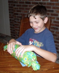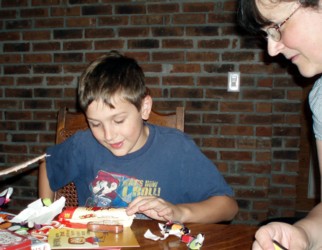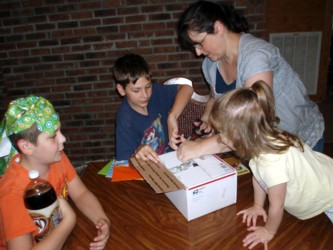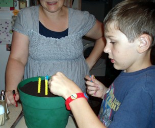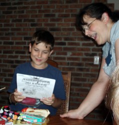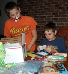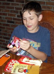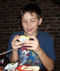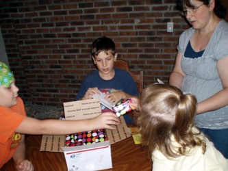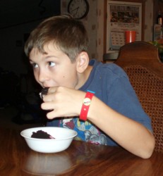 When Rosie saw Dwight taking more worms for his dirt cake, she wanted more too. I think she only had one to begin with, and she ate it right away. So Becky gave her another one, but this time after one bite she made a horrible face and said, "it's too spicy!" And Rosie ate up most of the honeybee candy that Laurie sent Boyd. She also ate a lot of the bigfoot rootbeer mints. It helped her feel better about not having a birthday, lol.