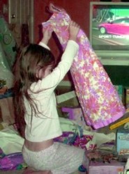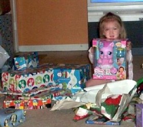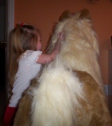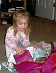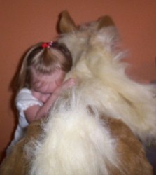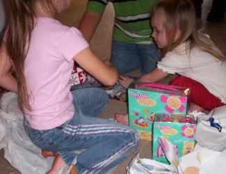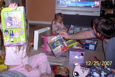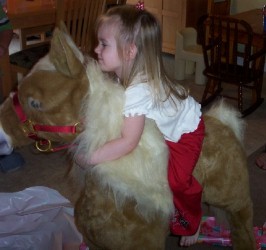 Her gift from her grandmother was saved for last because they knew if they gave it to her earlier that would be the end of opening presents! She got her Butterscotch the Pony. It was the only thing she had asked for. They kept telling her they weren't sure she would get it because it was so expensive, but Jessica's mom came through with it. She hugged it as soon as she pulled the paper off. She was so excited!