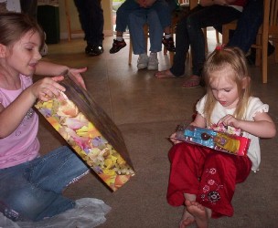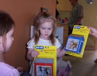Ashlyn had lots of presents to open. Once she started it was hard to keep track of it all! She got a barn for her horses, some play dough, little horses and more. She got little "My Little Ponies" and her mom and dad got her a "v smile" tv game.