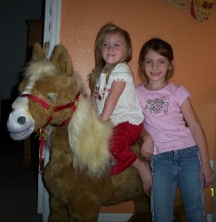 After that they had cake and all went out to look at Christmas lights in Port Orange. When they got back Ashlyn ended up playing with her barn but she made sure she kept an eye on her Butterscotch. Butterscotch is really cool; she makes the sound of eating when you put a carrot in her mouth, she turns her head and whinnies at you, she turns her head the direction she hears you calling her name and when you get on her she makes a walking sound. The best thing is there are no vet bills or feed bills. The best pony to own!