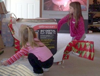 Carey and Jason got Brooke a TV and Ashlyn a DVD player. They were excited about those. Their mom and dad got them a swing set. They had to wait until the next day to play with it because they were gone the whole day.