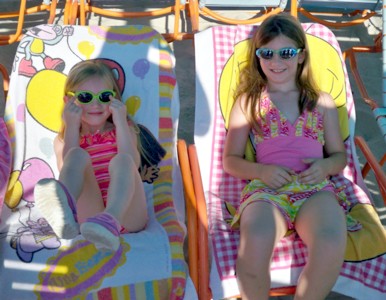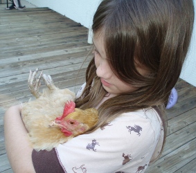Brooke with her fuzzy headed chickens. Tony calls them King Julien and Maurice (from Madagascar), but Brooke doesn't appreciate the humor.