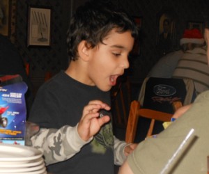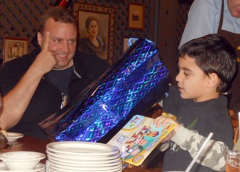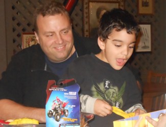 Jason seems to be enjoying this present-opening almost as much as Drew.