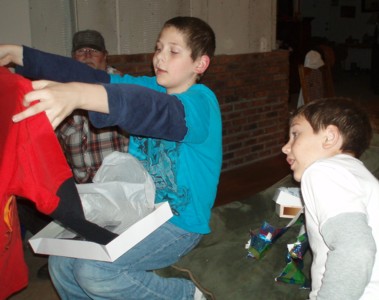 Can you tell how Dwight was laughing in this first picture? The present was wrapped in layers and layers of tissue paper, and he thought he'd never reach the middle.
