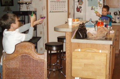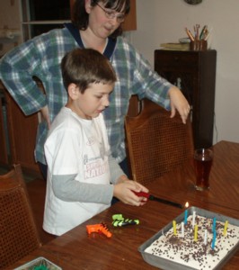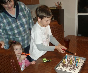 Those kids had so much fun playing with those tiny little squirt guns. Sorry the picture of Dwight blowing out the candles is so blurry. I had to hurry up and catch the picture of Dwight blowing out the candles before he was finished, and I was all nervous about shutter delay, so the picture is a little blurry.
