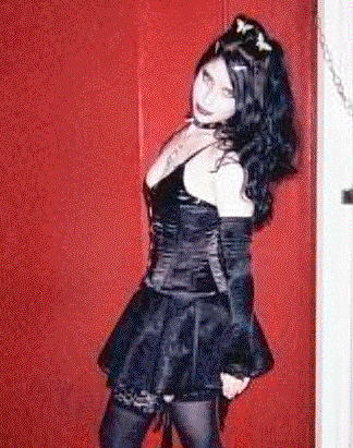 this glitter bitch had me falling off of my chair with her submission letter *laughs* i've never in my life heard someone refer to "vampyre" as "vamposer" *big grin* i'm sure its been used before, but what a way to put it :) well anyways.. back on subject.. Glitter Vixen is a joisey chick *have i ever mentioned my sick infatuation with NEW JERSEY, god i love that place :sighs:* (hits self in head) i dunno whats wrong with me tonight, the train of thought is going way off track..so yeah! like i was saying, if ya really wanna find her you might just check the NYC goth/industrial clubs.. just look for the glittery chick on the gogo box..heheh once you spot her you might yank her down and ask her to make ya a webpage..being that she is a webdesigner im sure it could be arranged..while im on the subject of webpages, her page is quite the little hideout.. well all except that rant about smoking *winks* hehe she even quoted my theme song. ::sings:: "cuz its soooo easy when your evill".. oh oh i almost forgot.. and her birthday is one day after mine but a few years before hand so shes a taurus chick just like me *high five*