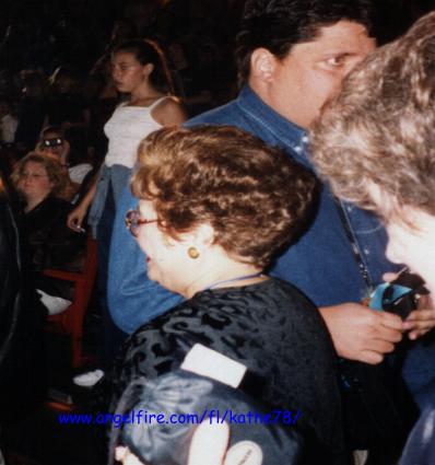 L.F.O. (Lyte Funkie Ones) came out. I only know one song, "Sex U Up (The Way I Like It)", so during their show, I look around and see 2 ladies come out of the backstage area. Nicky sees them,too. I know who the first one is.....Mrs. Dorough(IN THE GLASSES)! We stick our hands out as she walks by and I tell her I love her son (even though B-Rok is my fave) and she grabs my hand and says "I love you,too. You are so sweet!" The lady on the other side of her happens to be Mrs. Littrell. We're too far to touch her, so I grab my camera and snap a pic of my future mother-in-law and Howie's mom! |