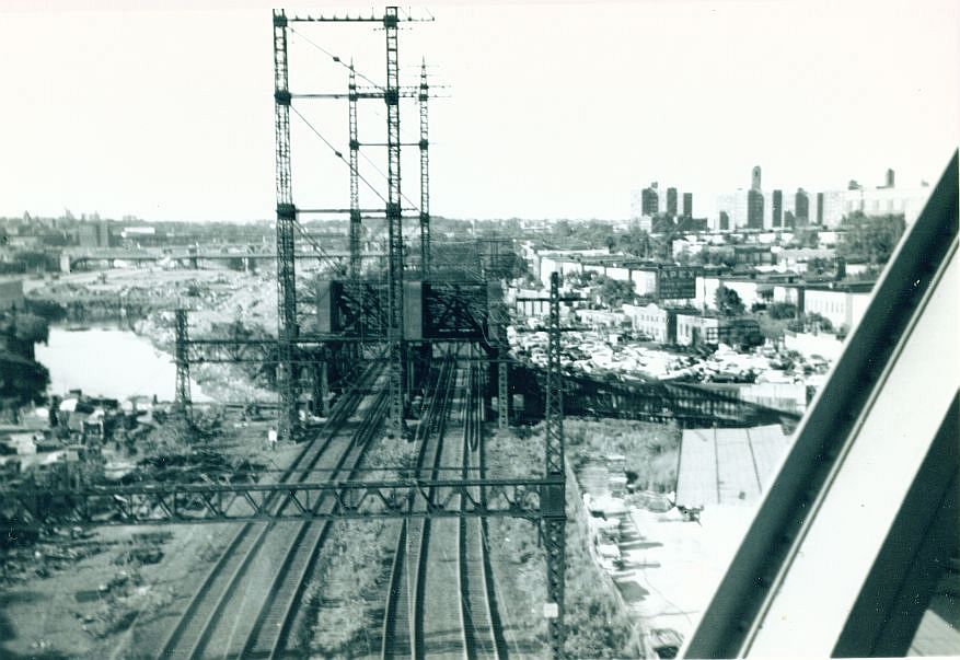 A 1961 view showing the bridges over the Bronx River. When the NYW&B was operating there were 6 tracks and another bridge for the NYW&B on the left.
