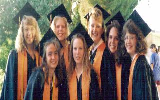 (clockwise from left to right) Nicole, Carrie, Bobbi Jo, Angela, Me, Cindy and Valerie graduating from Coalinga High School, 9 June 1994.