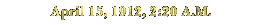 Some jump, some fall, each dotting the water's surface like the period at the end of a sentence. Then, the stern slips under the water, pluniging everyone into a coldness so intense it is indistinguishable from fire. Ten minutes. Twenty minutes. The inchoate wial of fifteen hundred souls slowly fades to individual cries from the darkness. We know you can hear us! Save one life! Seven hundred survivors stand by in lifeboats built for twelve hundred, afraid to act in fear of getting swamped. They tell themselves that the voices from the water do not belong to their husbands or loved ones. They are merely the cries of the damned... From the book: "James Cameron's Titanic"
